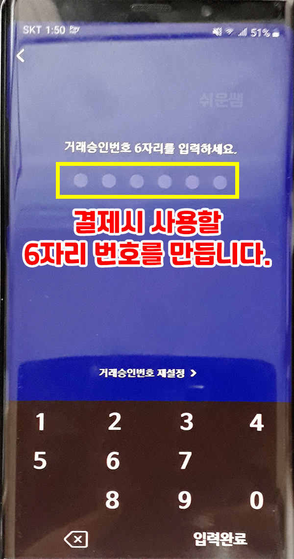 결제하기 누르고, 6자리 숫자로 인증(또는 얼굴인식 인증)을 합니다.
