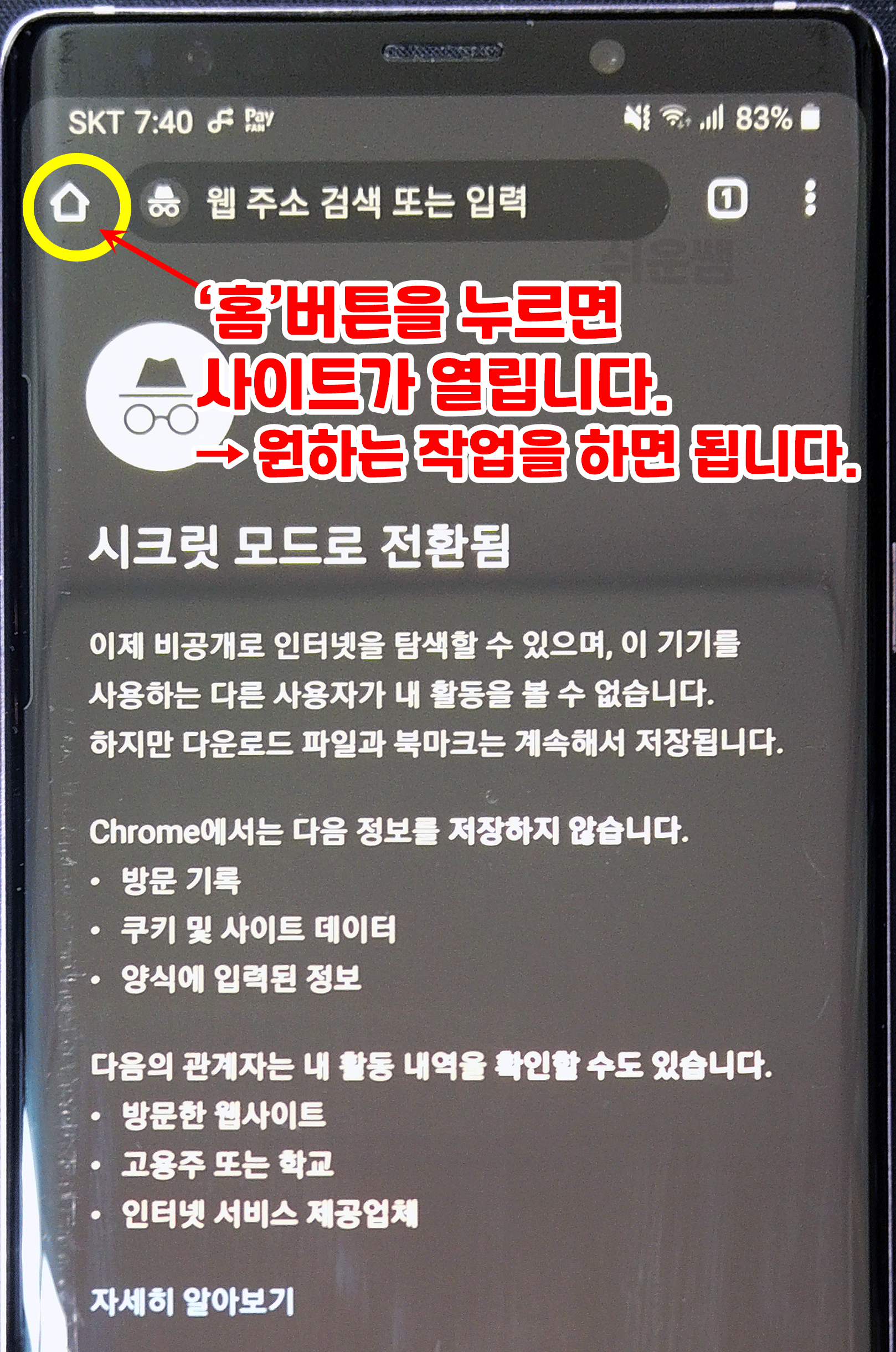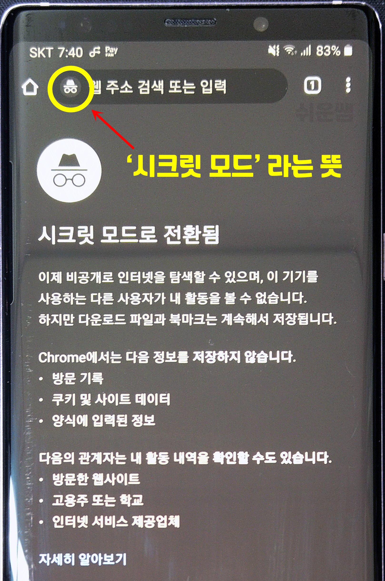 많이 궁금해 하시는 시크릿모드 종료하는 방법입니다.