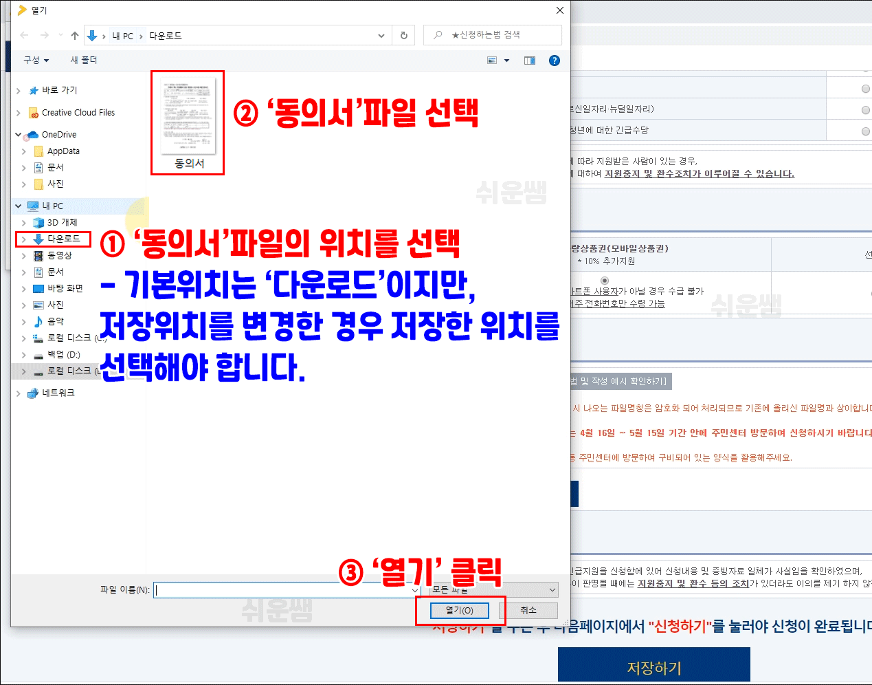동의서파일 - 바탕화면 이나 다운로드 등 저장한 위치 선택