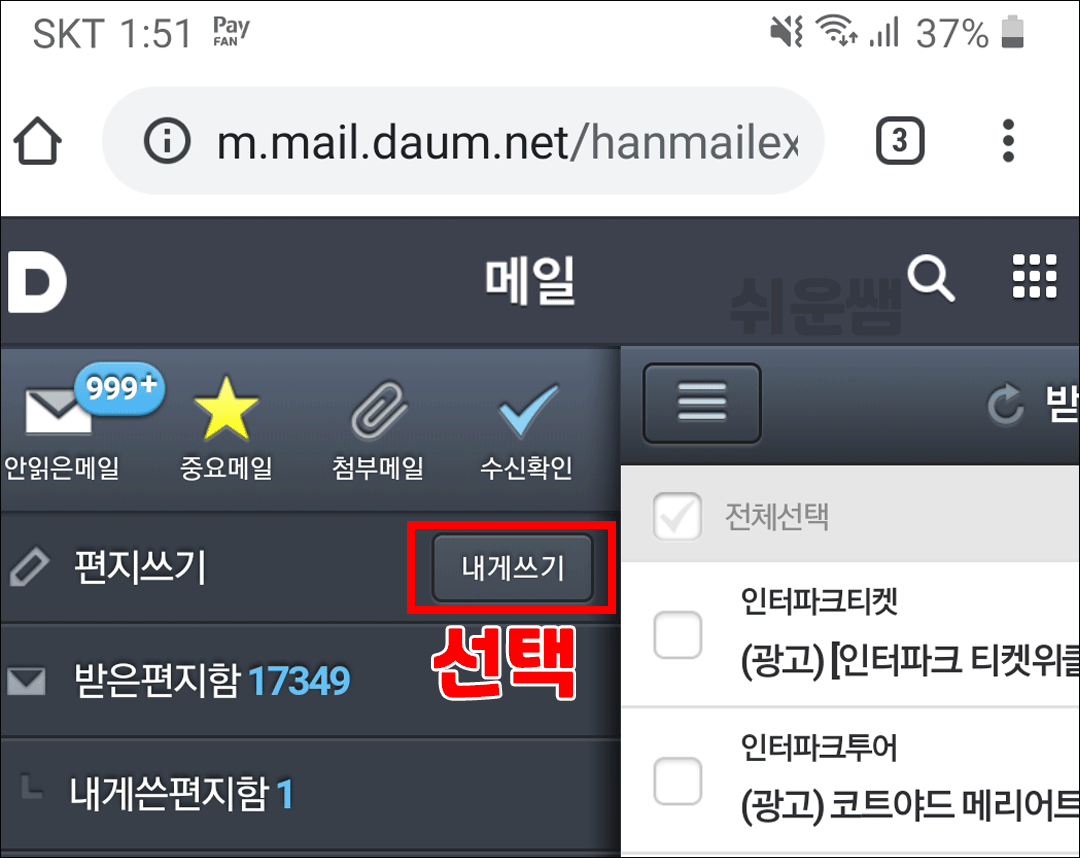 ④ 메뉴 목록에서 [내게쓰기]를 선택합니다.