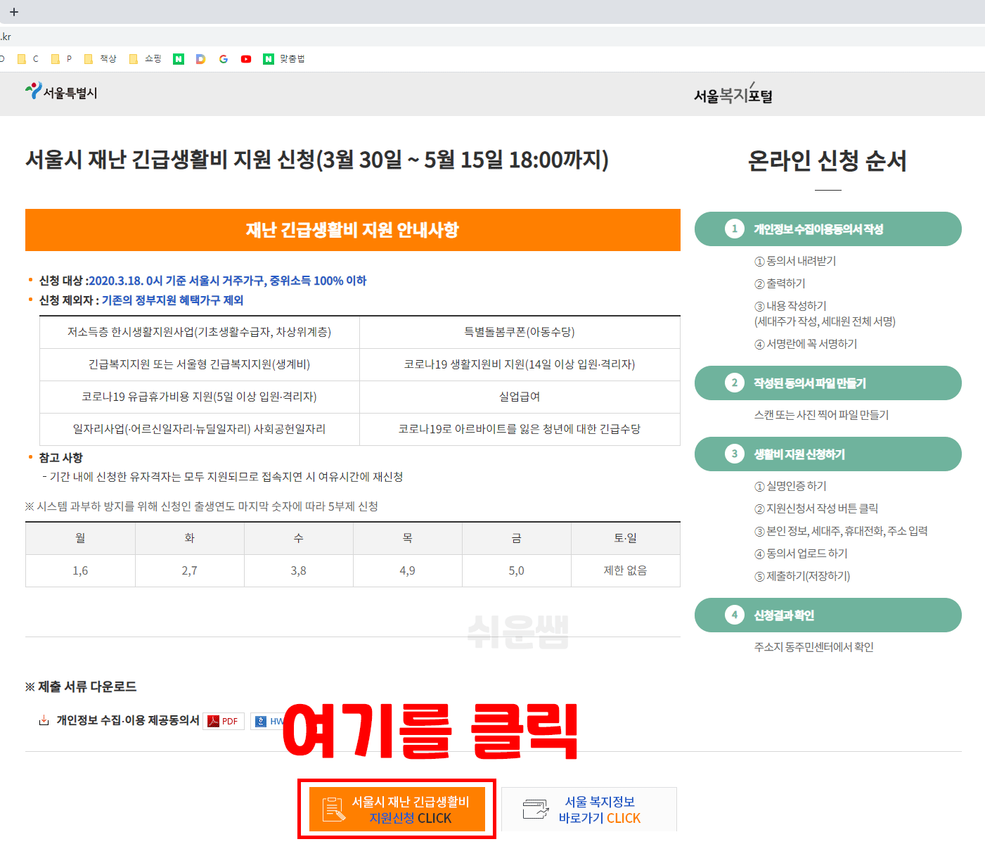 서울시 재난 긴급생활비 지원 온라인 신청하는 방법과 작성과정 - 자세한 설명