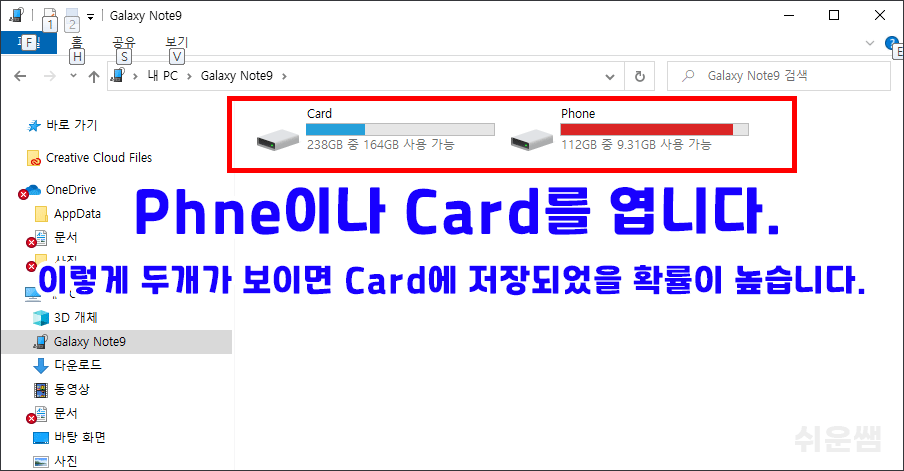 ⑤ Phone(내장메모리)이나 Card를 엽니다.